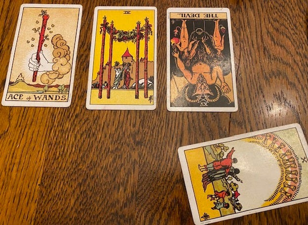 Past: Ace of Wands - The Querrent has been focused on the self for quite sometime, perhaps living like a single person even if they’re not (see the present card!)